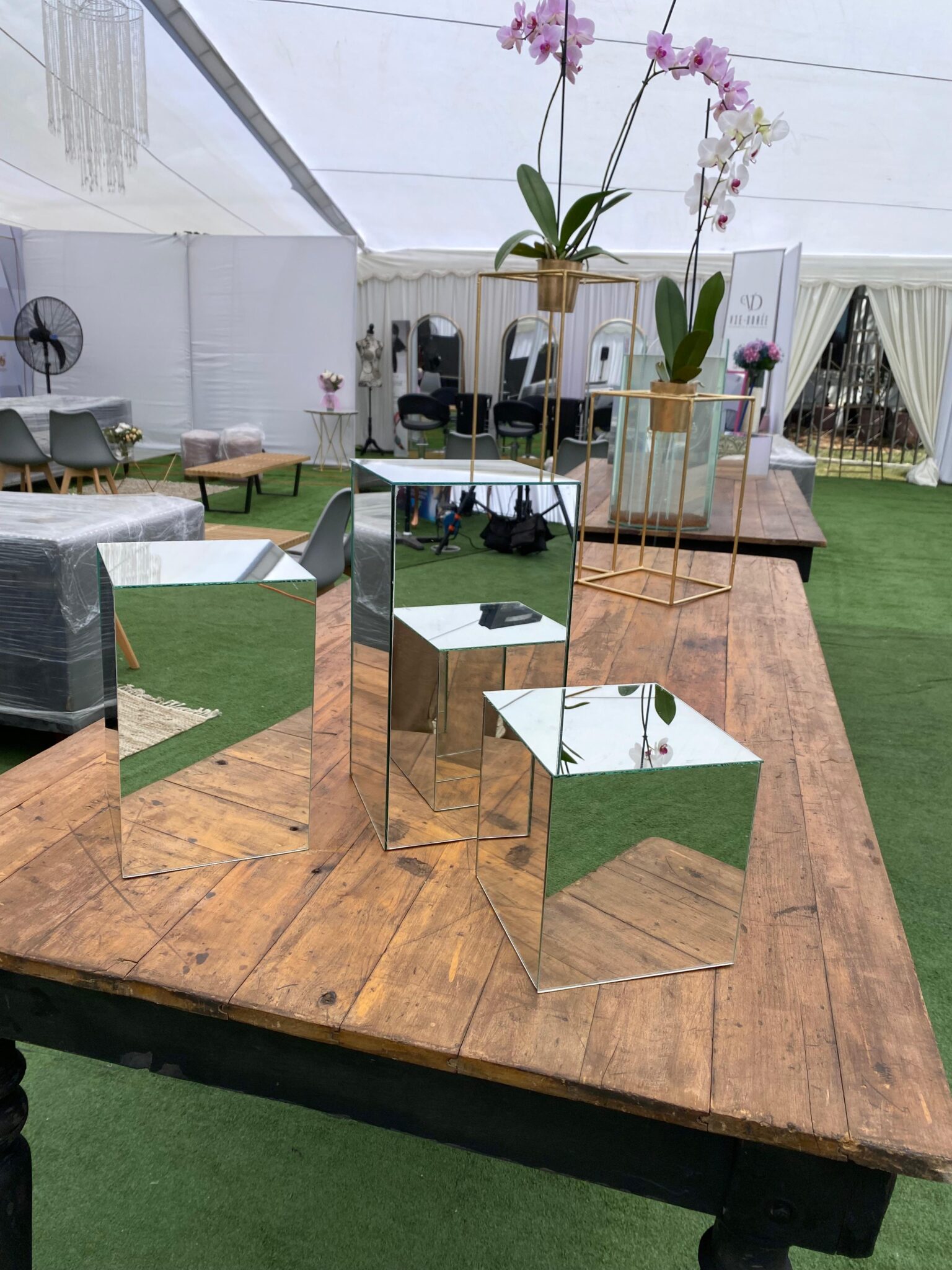 Juego de 3 cubos espejados, ideales para mesas buffet, exhibición de comida o decoración en distintos niveles.