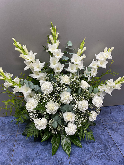 Inicio » Floreria en Viña del Mar » Arreglo de Condolencias Gladiolos y Claveles colores surtidos