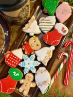 6 galletas de jengibre decoradas, con motivos navideños: botas, estrellas y clásicos hombres de jengibre