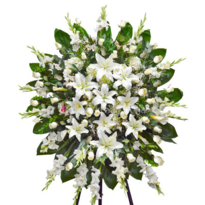 El precio original era: $ 59,900$ 39,900El precio actual es: $ 39,900Arreglo de Condolencias Gladiolos y Claveles colores surtidos