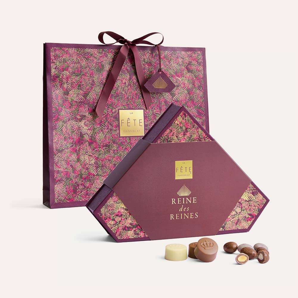 Colección Día de la Madre 420g La Fête Chocolat: bombones, Dragée almendra tostada confitada y Normanda, más 6 bombones edición limitada rellenos de avellana y lúcuma con cobertura de chocolate leche 34% cacao y blanco 31% cacao. El regalo más completo. ⚠️ Solo entrega 9, 10 u 11 mayo 2026. Reservas cierran el 7 mayo.